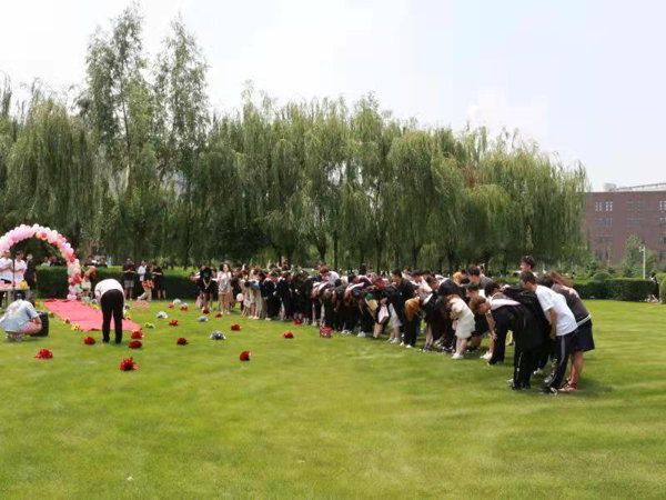 首先,由主持人对即将毕业的学生表示热烈的祝福。各系教师希望不忘母校,谨遵老师教诲,锐意进取,报效祖国,再创辉煌。然后在2017级辅导员周皓然老师的带领下,同学们向四年来领导的关怀,老师的教导,母校的培育助表达感恩之情。毕业生集体宣誓:“铭记母校校训,谨遵师长教诲。请母校放心,请社会放心”。然后他们以自己的独特方式表达了对母校的感谢,合影留念,并一同祝福设计学院桃李满天下,明天更美好。