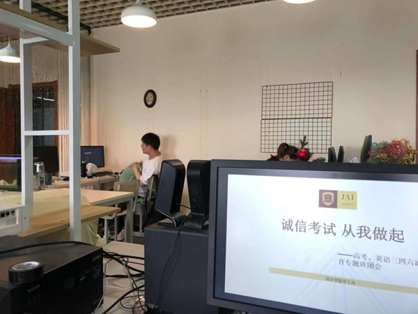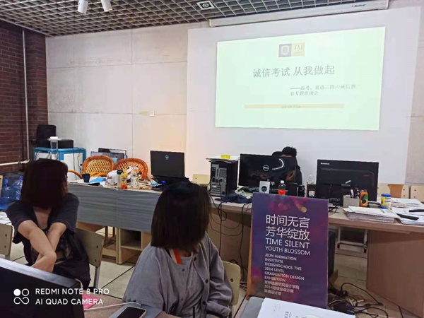 随着2021年的高考来临,我国三四六级考试也即将拉开帷幕,通过考试使同学们对自身的英语水平有较为清醒的认识。设计学院于2021年6月4日开展诚信考试主题教育活动,参与此次活动的有设计学院全体学生。