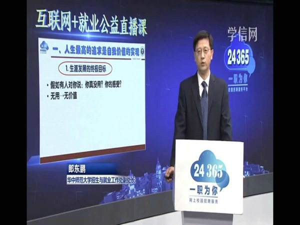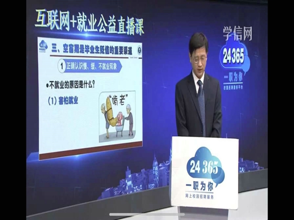 首先本期课程针对毕业生中存在的满就业、缓就业、不就业等现象、从追求自我价值实现出发,以及引导毕业生抓住祖国建设、名族振兴的关键机遇期,提振精神、调整心态,级早就业,与祖国发展同频共振,在更高的层次上,以更高质量实现自我价值。