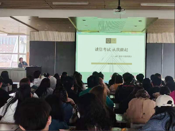 随着期末考试的临近,为了营造良好的考试氛围、净化考场环境杜绝有失诚信的舞弊行为。设计学院学院于2021年4月26日中午12:30在教学楼b楼614进行主题班会活动,参与此次活动的人员有设计学院学工办老师以及设计学院全体同学。