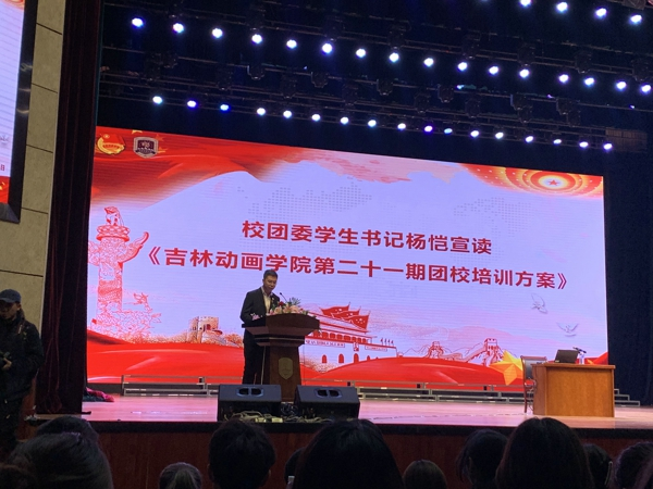 大会按照开班仪式会序,首先全体起立庄重严肃地演唱了国歌,接着由校团委学生书记杨恺宣读《吉林动画学院第二十一期团校培训方案》,之后第二十一期团校培训学员代表庄重地发言将此次仪式带入高潮,大会第四项校团委书记王会萍做开班讲话,最后省团委教师韩雪梅教授进行了以《青春向党、奋斗强国/做新时代合格的共青团员》为主题进行了专题讲座。