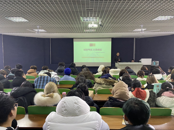 为了大力弘扬优良学风和考风,全面迎来全国四六级大学英语考试,增强大我校学生的诚信意识,切实强化大学生诚信观念,营造良好的诚信氛围。设计学院于2020年12月9日开展设了计学院诚信主题教育活动。参与本次活动的有设计学院学工办主任赵立伟、2017级辅导员周皓然、2018级辅导员曹海滨、2019级辅导员刘鑫以及设计学院全体学生。