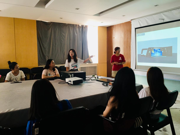 随后,设计学院师生带领泰国访学团同学们来到B328会议室进行专业交流座谈会。过程中,设计学院2名大三学生向泰国访学团展示了工作室项目成果以及个人参赛作品,从各方面阐述了自己的设计理念,展示设计效果图。精彩的发言也受到了访学团的热烈掌声。虽然彼此之间需要翻译,但并不影响两校学生间对于专业的交流,访学团认真聆听、踊跃提问,我院学生仔细讲述、细致回答。