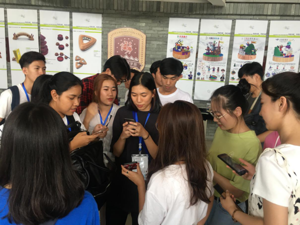 由于时间关系,此次两校学生的专业交流座谈会只好就画上一个句号,但两校学生都相信他们之间的专业交流会越来越紧密。最后,设计学院师生与泰国访学团学生们合影留念,同时互留联系方式,建立了微信交流群,希望今后能够在专业问题随时交流。