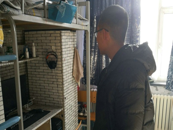 设计学院辅导员汤磊正在对我院学生寝室进行元旦节前安全排查