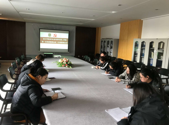 2019年2月28日下午14点00分,设计学院2018-2019学年第第二学期第一次党政联席会议(行政管理会议)在B328会议室召开。本次会议由院长助理刘鑫柳主持,综合办主任郭诗萌、学工办主任李小为及全体综合办、学工办行政人员参加。会议中全体行政人员进一步习读2019年度郑立国董事长《心中有宇宙, 脚下有乾坤》的工作报告,结合我院2019年工作计划总体布局,对2018-2019学年第二学期重点工作特别是开学初期准备工作进行了部署。