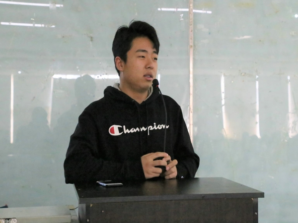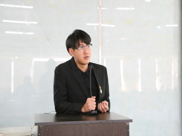 设计学院学生会副主席曲春旭上台对大家进行学生会值班工作培训