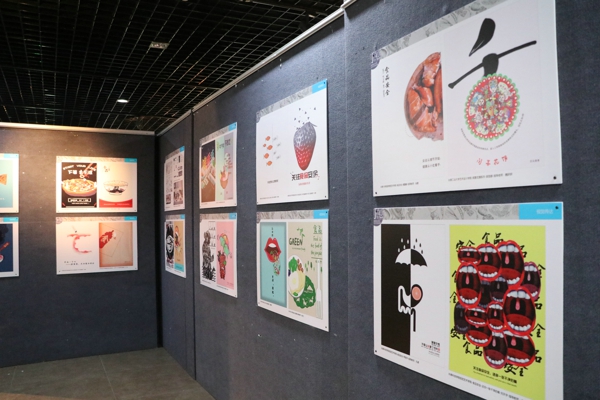 活动现场共展示了招贴设计、空间艺术、产品设计、服装艺术、数字媒体艺术、互联网产品设计、动画类、漫画类、微电影等九类作品。展览现场特别突出的是招贴设计和动画设计,每幅作品均紧密结合主题,充分利用各种设计元素和设计手法生动直观的表现了警示食品安全语境,充满了智慧和艺术灵性,也体现了大学生将创作灵感和多学科交叉融合的创新能力。外表光鲜亮丽,内在早已腐败溃烂的胡萝卜;外表看似“新鲜”的鱼其实是抗生素浸泡的结果;各种食品添加剂铺天盖地的倾倒进人们嘴里……一幅幅引人深思、促人警醒的食品安全海报用超强的视觉冲击力,振憾着每位参观者的内心。