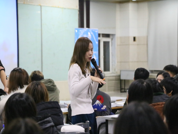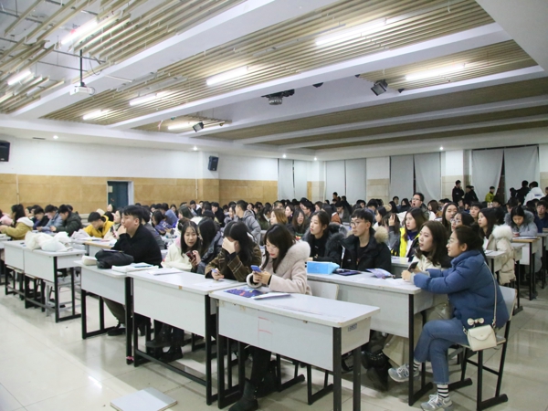 宣讲会进行中,设计学子们积极互动。企业代表指导同学们要认识到,无论什么工作都是从基层做起,随后向大家介绍了凡拓员工的各种福利,工资底薪、住房补贴、见习期提成等。经过主讲人对凡拓集团的介绍,有效的提高了我院同学们的积极性。