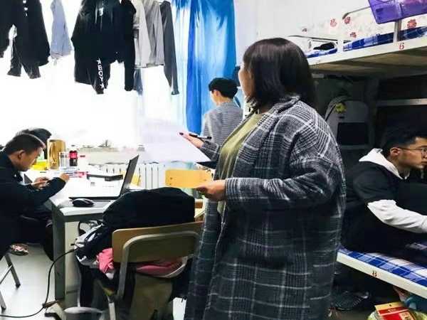 设计学院院长助理刘鑫柳老师正在查12号公寓