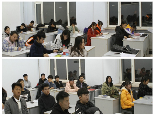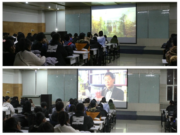 设计学院的同学们正在观看《中国宪法》幻灯片