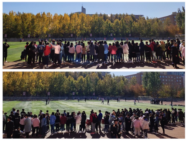 设计学院团委学生会所有成员正在为我院球队加油助威