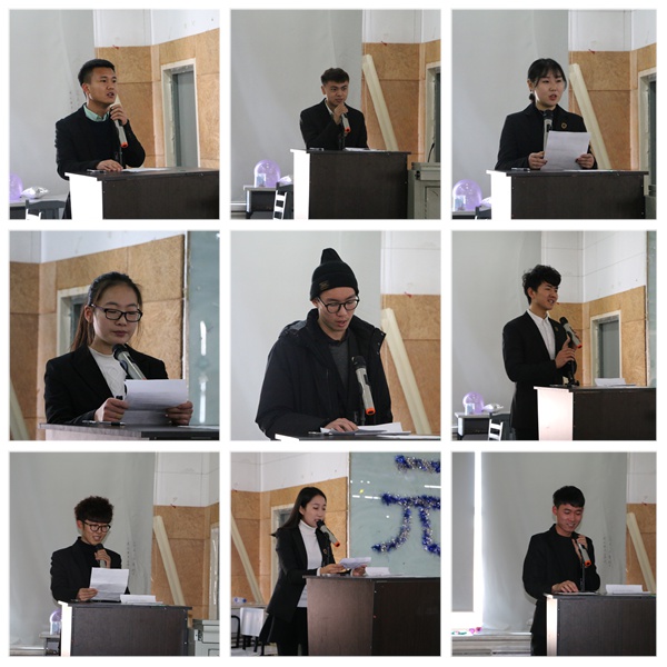 学工办任雪艳老师充分肯定本届团委学生会工作,指出团委学生会是一支有战斗力的团队,团队同学们精诚团结,重大任务面前敢挑重担,在运动会、元旦晚会等重大活动中组织有力,圆满完成各工项工作,勉励大家下学期再接再厉,再立新功,为设计学院增光添彩。学工办副主任、团委书记刘鑫柳老师对团委学生会一年工作给予了充分肯定,并阐述了学生会的重要地位和作用,对学生会的发展提出了殷切希望。学生会主席司亚军肯定了各部门工作完成出色,并对开学以来各部门的付出一一予以点评,并希望来年百尺竿头更进一步、再创辉煌。