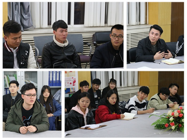 参加座谈会的同学都发表了自己的感想,讨论中提到有一位同学与大家的宗教信仰不同,导致大家会对他有些异样,后来通过班委的沟通,大家对他排除了心理上的隔阂。还有16级的班委提到有的同学上了大学后心理落差大,不与人交流,经常不上课,后来通过班长及时交流这学期改变了很多。所有的党支部成员和班委都踊跃发言,交流自己的看法,并从中学到工作方法。设计学院学工办主任任雪艳对一些重难点问题一一做了点评解答,为大家解答疑惑,并对努力沟通缓和班级学生心理状况的班委提出表扬。