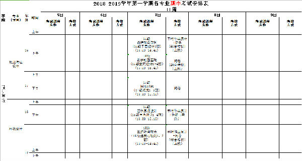 设计学院2018-2019学年第一学期各专业期中、期末考试安排表