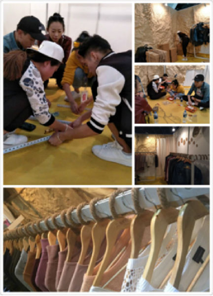 9.18第三天确定店铺主题“秋意”,整体色调采用暖色系为主,给人以温和家的感觉,搭配采购的服装以及陈列材料并对其进行二次创新设计。