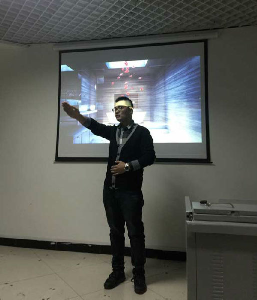 设计学院环境设计系基础型教师王嘉尧正在讲效果图渲染