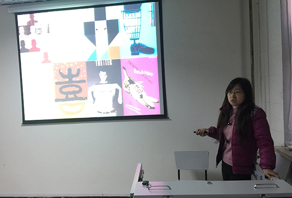 设计学院视觉传达设计系基础型教师徐双正在讲招贴构成要素-图形