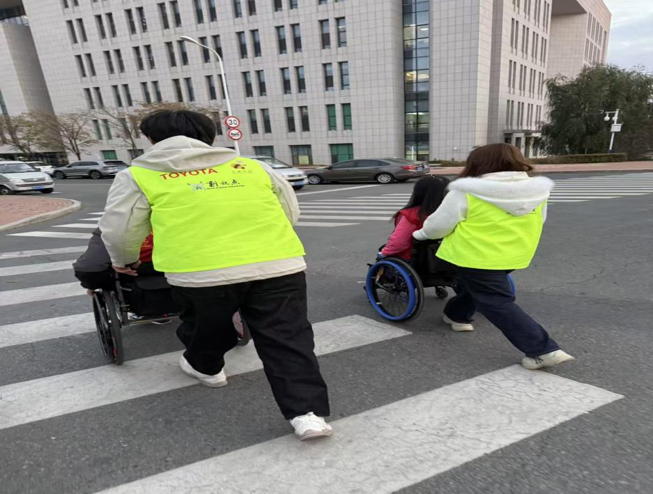 活动当天,志愿者们准时抵达康复中心,按照培训所学的规范流程,小心翼翼地协助残疾朋友们坐上轮椅,全程稳步推行。在地铁出行过程中,志愿者们提前规划无障碍换乘路线,细致提醒上下车注意事项,时刻关注残疾朋友们的状态,用严谨细致的服务保障了行程安全。抵达活动场地后,志愿者们全程陪同,默契配合现场工作人员,协助残疾朋友们有序参与活动,用行动传递着青春暖意。