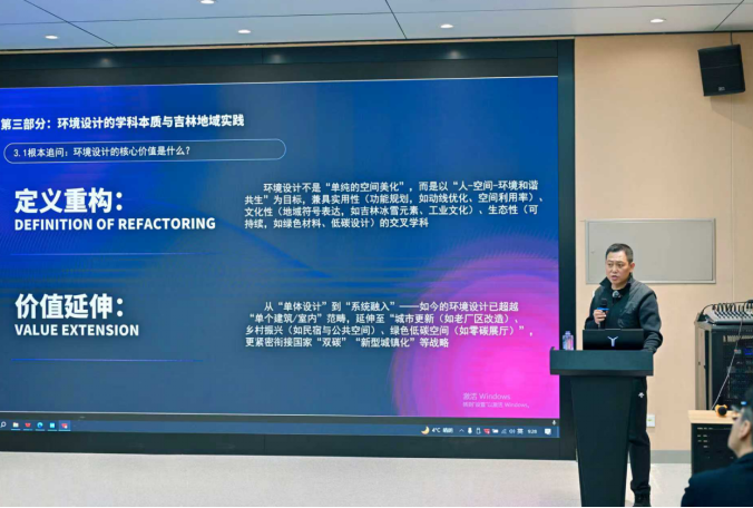 与使命认同。提出“以智慧驾驭工具”的教育哲学,培养学生技术主体性,避免毕业设计陷入概念虚化、内容空泛和落地困难,推动教育向问题导向和实践根基回归。他规划发展路径:构建“冰雪”环境设计理论、推动工业遗产保护再生、拓展与艺术疗愈等跨界融合,展现学科在地性关怀和未来可能。
