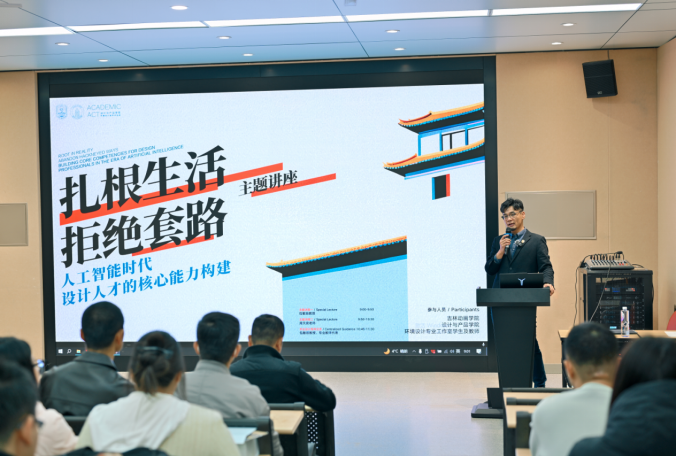 2025年10月31日,设计与产品学院环境设计专业举办“扎根生活·拒绝套路—人工智能时代设计人才核心能力的构建”讲座。活动特邀长春理工大学包敏辰教授与新媒体设计领域周天奕老师主讲,围绕“人工智能时代环境设计教育的创新发展路径”,分别从学科前沿与行业实践角度进行深度解析,为师生提供了学术与前瞻并重的思想盛宴。