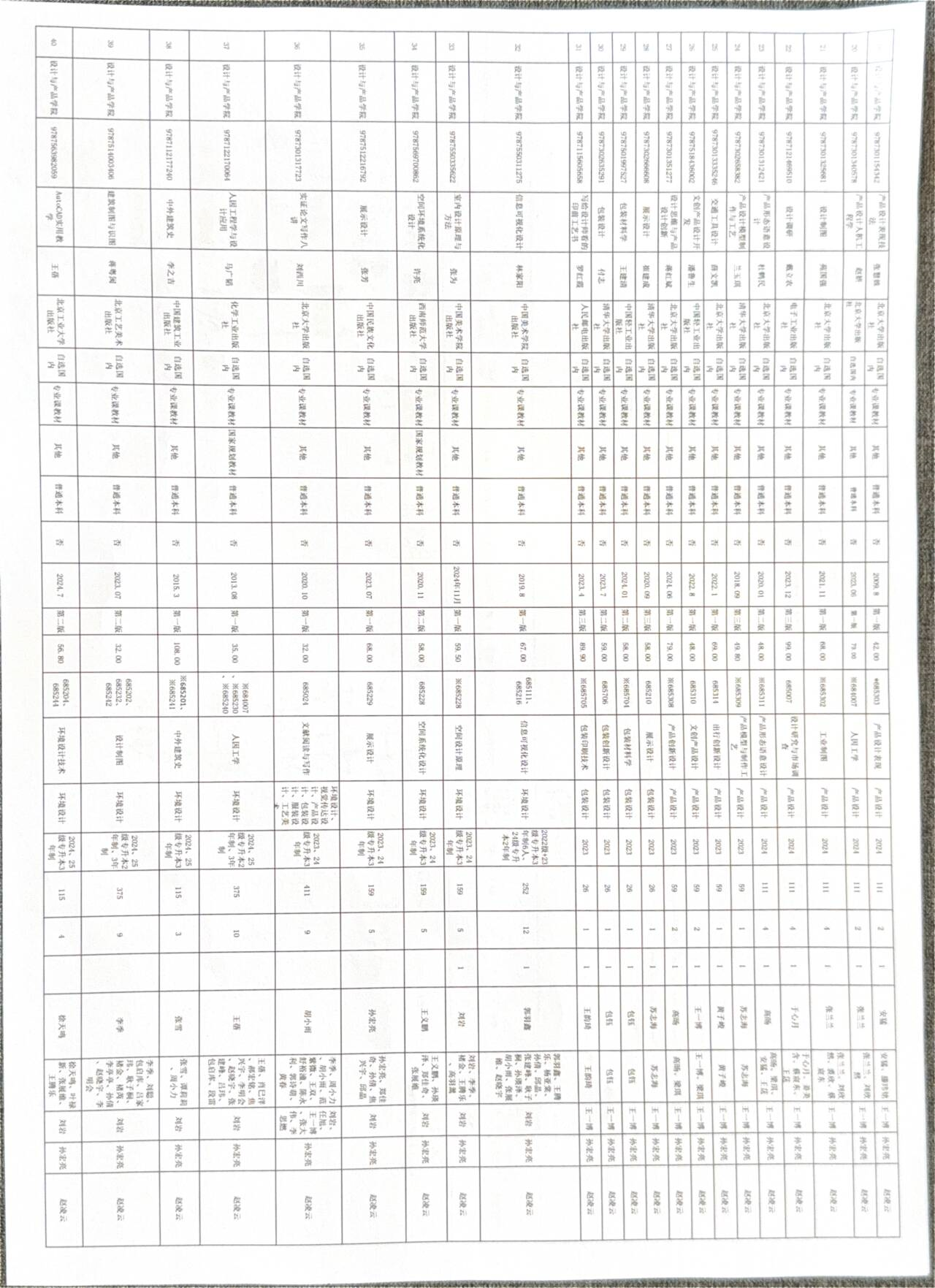 2025-2026学年第一学期设计与产品学院教材征订信息公示