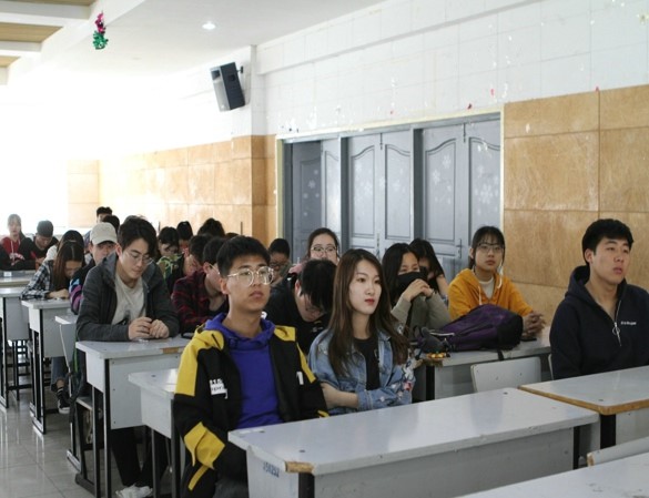设计学院筑梦班成员正在听主讲人讲解英雄事迹